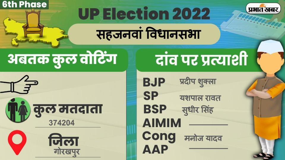 सहजनवा विधानसभा सीट उत्तर प्रदेश के गोरखपुर जिले में आती है. इस सीट से वर्तमान में भारतीय जनता पार्टी के शीतल पांडेय विधायक हैं. उन्होंने समाजवादी पार्टी के यशपाल सिंह रावत को 15,377 मतों से हराया था. मतगणना 10 मार्च को होगी. सहजनवा विधानसभा सीट से भारतीय जनता पार्टी के शीतल पांडेय विधायक हैं. वह 72 साल के हैं. उन्होंने दीन दयाल उपाध्याय गोरखपुर विश्वविद्यालय, गोरखपुर से शिक्षा ग्रहण की है.