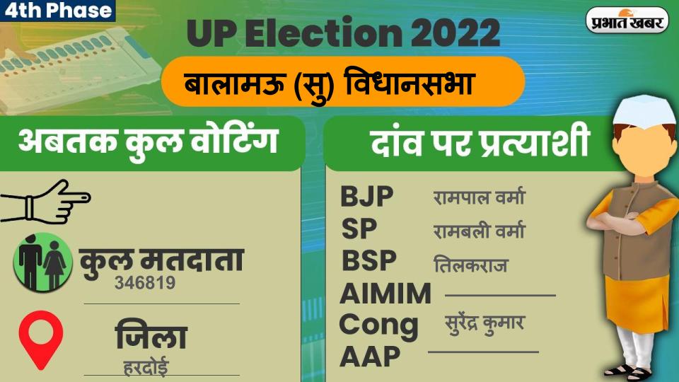UP Chunav 2022: तीसरे चरण के बाद आज चौथे चरण का मतदान हुआ. हरदोई जिले में आने वाले बालामऊ विधानसभा सीट पर भी दूसरे चरण में मतदान हुआ. हरदोई जिले में शाम पांच बजे तक 55.29 प्रतिशत प्रतिशत मतदान हुआ.
