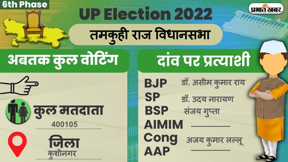 UP Chunav 2022: उत्तर प्रदेश विधानसभा चुनाव 2022 के चुनावी दंगल जारी है. पांचवे चरण के बाद आज छठे चरण का मतदान हुआ. कुशीनगर जिले में आने वाले तमकुहीराज विधानसभा सीट पर भी छठे चरण में मतदान हुआ. कुशीनगर जिले में शाम पांच बजे तक 55 प्रतिशत मतदान हुआ. उत्तर प्रदेश के कुशीनगर जिले में कुल सात विधानसभा सीटे हैं. इसमें एक तमकुहीराज विधानसभा सीट भी है. तमकुही राज विधानसभा सीट से कांग्रेस के प्रदेश अध्यक्ष अजय कुमार लल्लू विधानसभा सीट से जीतकर आते हैं.