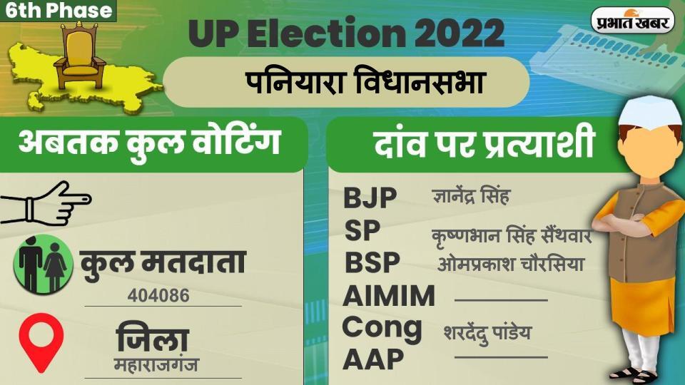 UP Chunav 2022: उत्तर प्रदेश विधानसभा चुनाव 2022 के चुनावी दंगल जारी है. पांचवे चरण के बाद आज छठे चरण का मतदान हुआ. महराजगंज जिले में आने वाले पनियरा विधानसभा सीट पर भी छठे चरण में मतदान हुआ. महराजगंज जिले में शाम पांच बजे तक 57.38 प्रतिशत मतदान हुआ. महराजगंज जिले की पनियरा विधानसभा सीट पर 2017 के विधानसभा चुनाव में कुल 61.16 प्रतिशत वोट पड़े. इस चुनाव में भारतीय जनता पार्टी से ज्ञानेंद्र सिंह ने बहुजन समाज पार्टी के गणेश शंकर पांडे को 67491 वोटों के अंतर से हराया था.