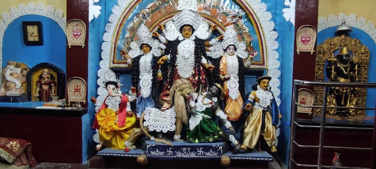 गुड़-चना का प्रसाद और एक टाइम आरतीविजयदशमी के दिन जब माता के विसर्जन के लिए प्रतिमा को उठाया जाने लगा तो वो हिली ही नहीं. पुजारी श्यामल भट्टाचार्य बताते हैं कि 1767 से स्थापित इस मूर्ति के दर्शनों के लिए देश ही नहीं विदेश से भी लोग आते हैं. आज तक माता से जो भी मनोकामना भक्तों ने मांगी है मां ने सब पूर्ण किया है. बताया जाता है मुखर्जी परिवार के सपने में माता ने आकर प्रतिमा विसर्जित नहीं करने और पूजा करने की बात कही थी. माता की सेवा-पूजा को खर्चीला बताने के बाद उन्होंने केवल गुड़-चना और एक टाइम की आरती की बात कहकर स्वप्न से गायब हो गई थीं. उस समय से लेकर आज तक माता की पूजा-अर्चना में भोग प्रसाद के रूप में गुड़-चना चढ़ाया जाता है. वहीं, सेवा के रूप में आरती की जाती है.
