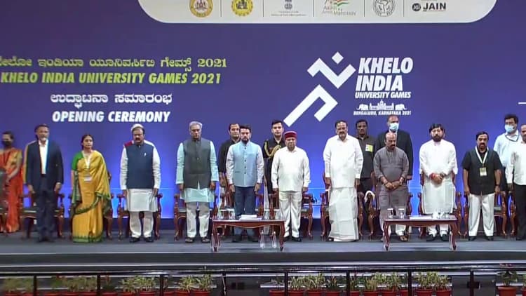 बेंगलुरु में खेलो इंडिया यूनिवर्सिटी गेम्स (Khelo India University Games ) का उद्घाटन रविवार को उपराष्ट्रपति एम वेंकैया नायडू ने किया. उद्घाटन समारोह कांतिवीरा स्टेडियम में रखा गया था. इस कार्यक्रम में कर्नाटक के मुख्यमंत्री बसवराज बोम्मई, राज्यपाल थावर चंद गहलोत और केंद्रीय खेल मंत्री अनुराग ठाकुर मौजूद रहे. उद्घाटन के मौके पर केंद्रीय खेल मंत्री अनुराग ठाकुर ने कहा, हार-जीत खेल का हिस्सा है. मैं तो कहूंगा कि आप खेल की भावना का सम्मान करिए और आगे बढ़ें. मुझे भरोसा है कि पिछली बार की तरह इस बार भी जो छात्र यूनिवर्सिटी खेलों में खेल रहे हैं उनको भविष्य में आप देश के लिए खेलते हुए देखेंगे.