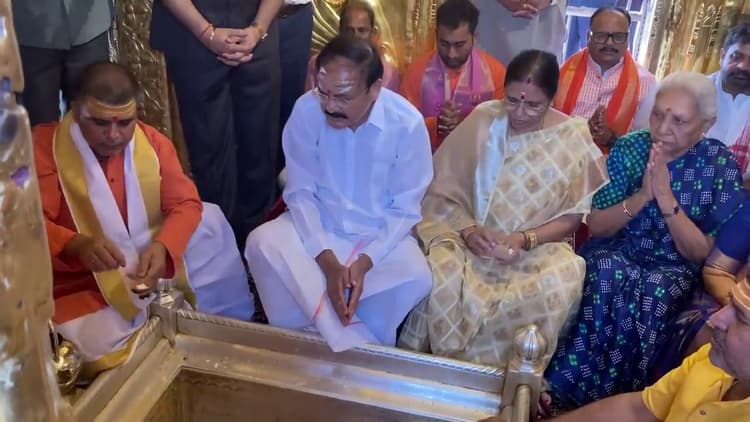उपराष्ट्रपति एम. वेंकैया नायडू अपने परिवार के साथ देवाधिदेव महादेव काशी विश्वनाथ का षोडशोपचार विधि से पूजन अर्चन किया. श्री काशी विश्वनाथ का दर्शन पूजन के बाद अपने परिवार को बाबा विश्वनाथ के धाम को निहारा और मंदिर के बारे में अधिकारियों से जानकारी भी ली. मंदिर मे दर्शन के बाद उन्होंने कहा कि अकल्पनीय है ये दृश्य. काशी विश्वनाथ धाम में दर्शन पूजन के बाद उपराष्ट्रपति एम. वेंकैया नायडु सीधे बाबा काल भैरव के दरबार पहुंचे, जहां विधि विधान से बाबा का पूजन किया.