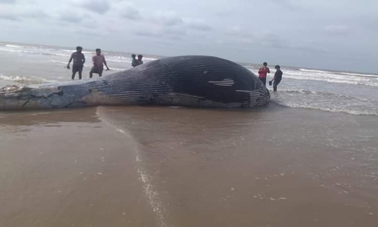 मंदारमनी में समुद्र किनारे मृत मिले व्हेल की तस्वीरें और वीडियो सोशल मीडिया पर काफी वायरल हो रहा है.
