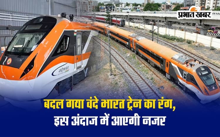 बदल गया है वंदे भारत ट्रेन का रंग. अब केसरिया रंग में आएगी नजर. नई वंदे भारत ऑरेंज, व्हाइट और ब्लैक रंग के कॉम्बिनेशन में नजर आने वाली है. जिसकी टेस्टिंग व फर्स्ट लूक जारी भी हो गयी है. अभी तक देश में चल रहीं वंदे भारत ट्रेनों का रंग सफेद और नीला है. अब इसके रंग में बदलाव देखने को मिलेगा.