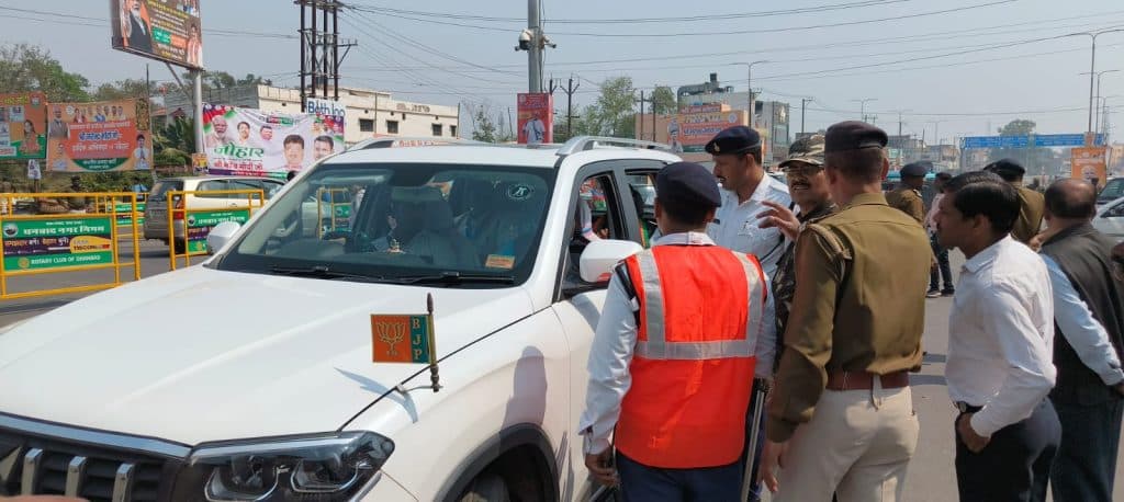 सिंदरी में पुलिस भाजपा के बड़े नेताओं की गाड़ी को भी चेक करके ही आगे जाने की अनुमति दे रही है. बिना पास के किसी भी गाड़ी को मेमको मोड़ से आगे जाने की अनुमति नहीं दी जा रही.