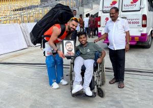 मैंने उनसे एक फोटो के लिए कहा और उन्होंने तुरंत एक फोटो खिंचाई. दिव्यांग फैन ने विराट की तारीफ करते हुए कहा, वह मैदान में भले ही आक्रामक हो सकते हैं, लेकिन मैदान के बाहर वह बहुत दयालु हैं और बहुत अच्छे इंसान हैं. उनकी कवर ड्राइव की वजह से मैं उनका फैन बना. उसी शॉट की वजह से मैंने यह स्केच बनाया. हम फैंस शायद टीम पर दबाव बढ़ाते हैं, लेकिन यह सिर्फ प्यार है. पूरी टीम को मेरा प्यार और विश्व कप के लिए शुभकामनाएं.