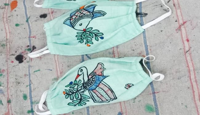 मुख्यालय से सटे जगतपुर टुन्नी मिश्र टोल की कलाकार उषा मिश्र और उनके पति रेमंत मिश्र ने कोरोना काल में मास्क पर मिथिला पेंटिंग को इस बारीकी से उकेरा और नयी दिशा दी कि आज इनकी चर्चा हर ओर हो रही है.