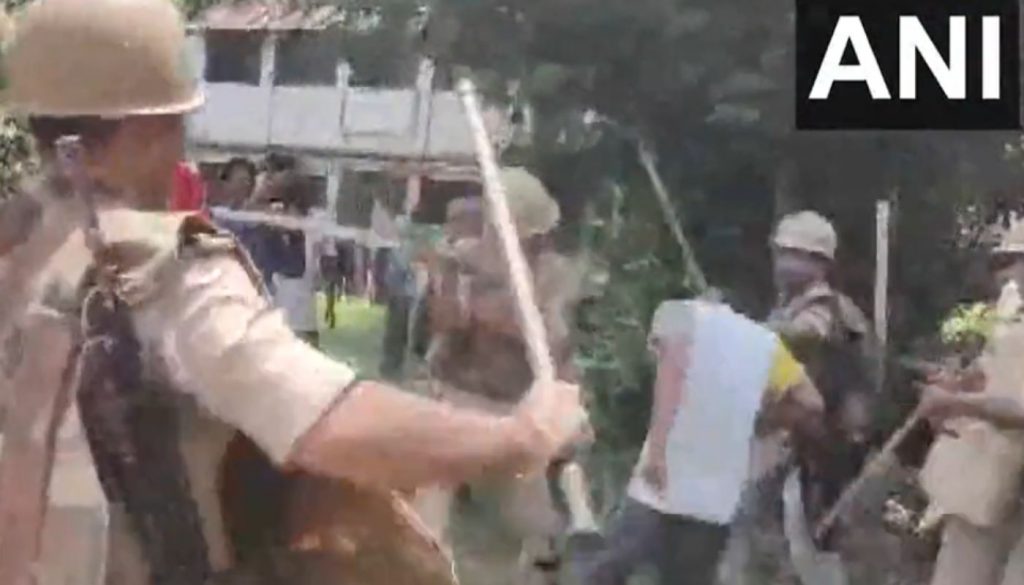 #WATCH | Police baton charge BJP workers protesting against alleged ballot rigging at Srikrishnapur in Nandakumar block of East Medinipur, following voting in West Bengal Panchayat polls yesterday pic.twitter.com/5pSiXng7M8