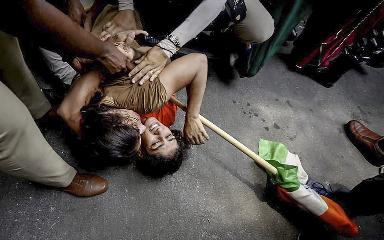 विनेश फोगाट, साक्षी मलिक और बजरंग पूनिया को दिल्ली पुलिस ने रविवार को सुरक्षा घेरा तोड़कर महिला ‘महापंचायत’ के लिए नए संसद भवन की ओर बढ़ने की कोशिश करने के बाद कानून और व्यवस्था के उल्लंघन के लिए हिरासत में ले लिया. इस दौरान सोशल मीडिया में कई तस्वीरें शेयर की जा रही हैं, जिसमें दोनों बहनों को हाथ में तिरंगा थामें सड़क पर गिरीं दिख रही हैं. जंतर-मंतर पर अफरातफरी के बीच पहलवानों और पुलिस अधिकारियों ने एक-दूसरे को धक्का दिया और विनेश फोगाट और उनकी बहन संगीता फोगाट ने बैरिकेड तोड़ने की कोशिश की. विनेश ने हिरासत में लिए जाने के प्रयास के दौरान कड़ा प्रतिरोध किया और संगीता उनसे लिपट कर सड़क पर लेट गई. पुलिस अधिकारियों ने उन्हें कई अन्य पहलवानों और उनके समर्थकों के साथ घसीटते हुए बसों में बैठा दिया.