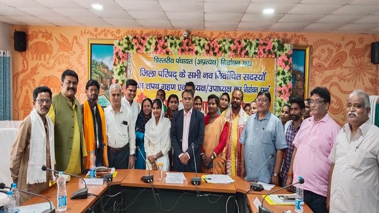 Zila Parishad Chunav: साहिबगंज समाहरणालय स्थित सभागार में मंगलवार को जिला परिषद अध्यक्ष व उपाध्यक्ष का चुनाव हुआ. डीसी रामनिवास यादव की अध्यक्षता में चुनाव संपन्न कराया गया. अप्रत्यक्ष चुनाव में मोनिका किस्कू अपनी निकटतम प्रतिद्वंद्वी सुमी मरांडी को 06 मत से हराकर अध्यक्ष पद के लिए निर्वाचित हुईं. उपाध्यक्ष पद के लिए सुनील यादव निर्विरोध निर्वाचित हुए. श्री यादव ने दूसरी बार उपाध्यक्ष पद का चुनाव जीता. डीसी रामनिवास यादव ने सभी जिला परिषद सदस्यों को पहले शपथ दिलाई. इसके बाद जिला परिषद अध्यक्ष व उपाध्यक्ष को शपथ दिलाई.