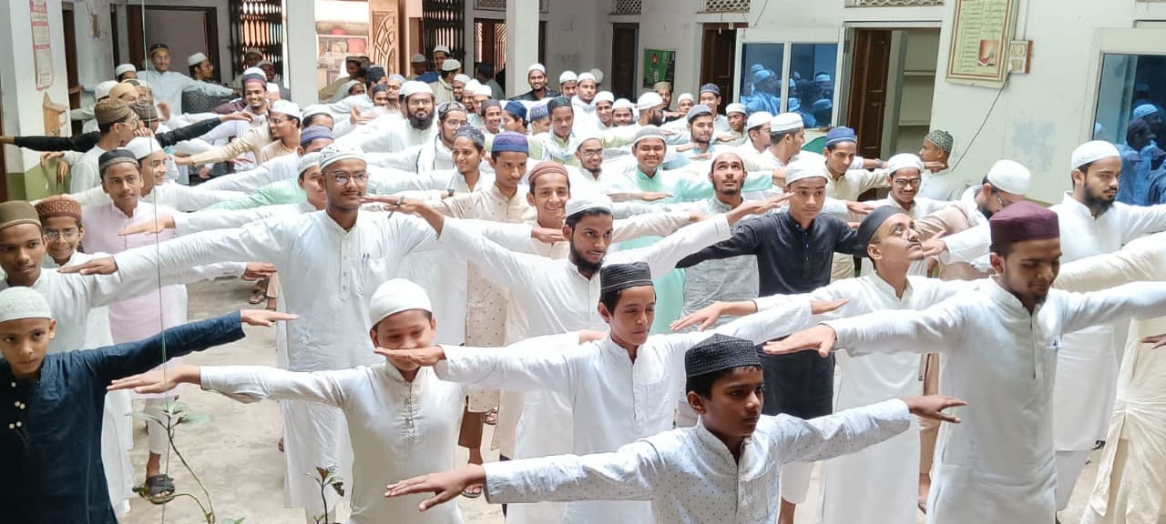 योग की महत्ता को स्वीकार करते हुए निरोग रहने के लिए मुस्लिम समुदाय के बीच भी योग दिवस का आयोजन खूब लोकप्रिय हो चुका है. पीएम नरेंद्र मोदी के संसदीय क्षेत्र वाराणसी में योग दिवस के मौके पर मदरसों में भी योग दिवस का आयोजन किया गया. अंतरराष्ट्रीय योग दिवस पर मदरसों व मुस्लिम बाहुल्य क्षेत्रों को छतों और मैदानों पर योग का प्रशिक्षण दिया गया. शिक्षकों ने छात्र-छात्राओं को योग करके निरोग रहने की प्रैक्टिस कराई. इस दौरान छात्रों के समक्ष योग्य प्रशिक्षक के निर्देशन में विभिन्न योग की मुद्राओं में योग करके निरोग रहने की साधना और परंपराओं का निर्वहन कर समाज में स्वस्थ्य रहने के प्रयासों और आयोजन की महत्ता पर भी मंथन किया गया. मदरसे में सुबह की शुरुआत ही छात्राओं ने प्रार्थना व योग करके की. मदरसे के शिक्षकों और मौलवियों के निर्देशन में योग की परंपराओं का निर्वहन कर छात्र भी खुश नजर आए.