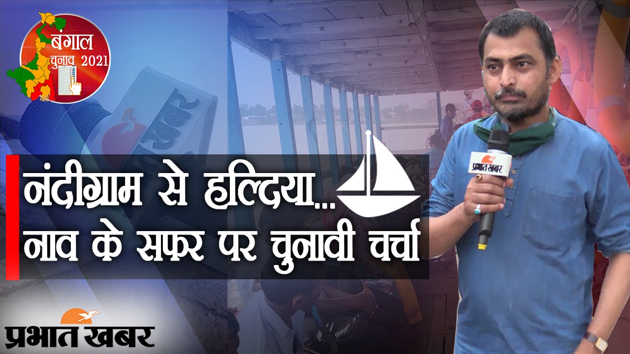 Bengal Election 2021: पश्चिम बंगाल विधासनभा चुनाव (West Bengal Election 2021) के पहले चरण की वोटिंग 27 मार्च को है. नंदीग्राम में दूसरे फेज में एक अप्रैल को वोटिंग है. इस सीट से टीएमसी सुप्रीमो ममता बनर्जी (Mamata Banerjee), बीजेपी के शुभेंदु अधिकारी (Suvendu Adhikari) और लेफ्ट की मीनाक्षी मुखर्जी (Meenakshi Mukherjee) मैदान में हैं. प्रभात खबर (Prabhat Khabar) ने ग्राउंड जीरो नंदीग्राम (Ground ZERO Nandigra) से लेकर आसपास के इलाकों का दौरा किया है. इसी दौरान हमने नंदीग्राम से हल्दिया (Nandigram TO Haldia) के बीच नाव के सफर पर लोगों से बातचीत की. हमारी खास पेशकश में देखिए नंदीग्राम से हल्दिया के बीच नाव पर बंगाल विधानसभा चुनाव पर चर्चा.