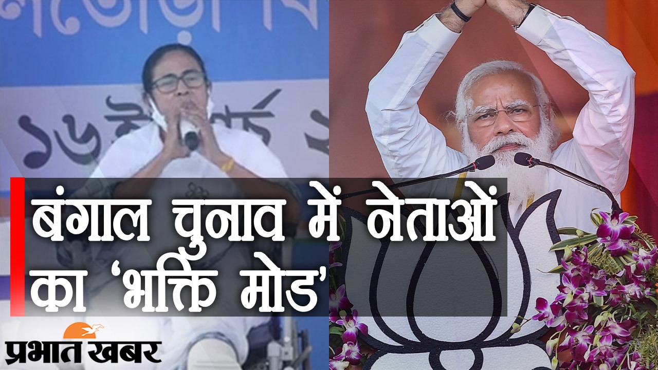 Bengal Elections Campaign And Dharam: कहते हैं डर सबको लगता है. गला सबका सूखता है. बंगाल चुनाव में भी नेताओं के सिर पर डर का भूत सवार है. भगवान के नारे लगाकर गला भी सूख रहा है. बीजेपी को डर ‘जय श्री राम’ नारे के हथियाने का है तो ममता बनर्जी ‘जय श्री राम’ से परहेज कर रही हैं. लेकिन, हर चुनावी मंच पर उनका चंडी पाठ जारी है. देखिए हमारी खास पेशकश में बंगाल चुनाव में नेताओं का भक्ति मोड.