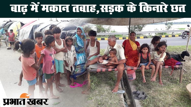 बिहार बाढ़: दरभंगा में बाढ़ की विनाशलीला, सड़क किनारे रहने को मजबूर ग्रामीण