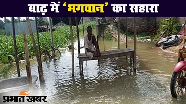 बिहार के दरभंगा जिले में बाढ़ के कारण लोगों को काफी दिक्कतें हो रही हैं. कई दिनों से पानी के बीच लोग जिंदगी गुजार रहे हैं. कहते हैं जिनका कोई नहीं होता उनका भगवान होते हैं. इस बाढ़ की विनाशलीला में भी पीड़ितों का सहारा भगवान हैं. दरअसल, दरभंगा जिले के केवटी प्रखंड के करजापट्टी पंचायत के कई बाढ़ पीड़ित मंदिर में शरण लिए हुए हैं. 24 जुलाई को बागमती नदी का पुरबारी तटबंध टूट गया. कई दिनों के बाद भी बड़की लाधा गांव में हालात सामान्य नहीं हो सके हैं.