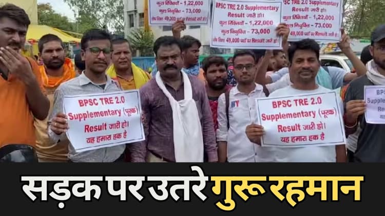 BPSC TRE 2: सप्लीमेंट्री रिजल्ट जारी करने की मांग को लेकर बीपीएससी TRE-2 के अभ्यर्थी अचानक से सड़क पर उतर आए. इस दौरान उनके साथ गुरू रहमान भी नजर आए.