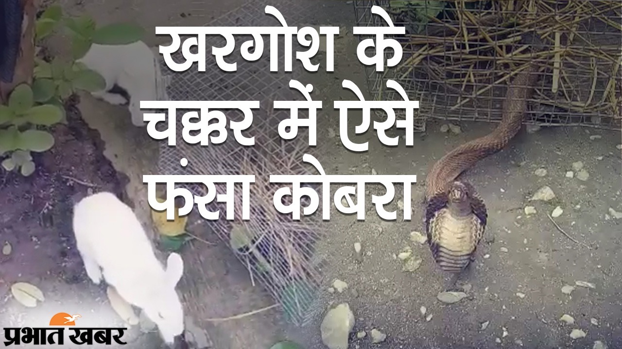 Cobra VS Rabbit Fight Video: पश्चिम बंगाल (West Bengal) के जलपाईगुड़ी (Jalpaiguri) में पालतू खरगोश (Rabbit) के शिकार के चक्कर में एक कोबरा (King Cobra) पिंजरे (Cage) में फंस गया. सांप खरगोश (Cobra And Rabbit) के शिकार के लिए पहुंचा था और पिंजरे में उसका सिर अटक गया. इसके बाद सांप दर्द से छटपटाने लगा. यह घटना जलपाईगुड़ी के पांडापाड़ा से सटे बटतला इलाके में सामने आई.