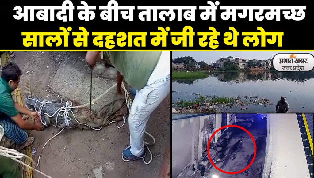 Aligarh News: आबादी के बीच तालाब से पकड़ा गया विशालकाय मगरमच्छ, कई सालों से दहशत में थे यहां के लोग