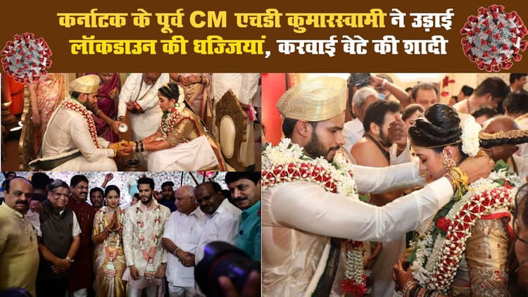 कर्नाटक के पूर्व सीएम एचडी कुमारस्वामी के बेटे निखिल कुमारस्वामी और सूबे के पूर्व आवासीय मंत्री एम कृष्णप्पा की पोती रेवती की शादी हुयी है. लॉकडाउन के बीच.