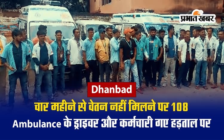 VIDEO: धनबाद में 108 एंबुलेंस के ड्राइवर और कर्मचारी गए हड़ताल पर, चार महीने से नहीं मिला है वेतन