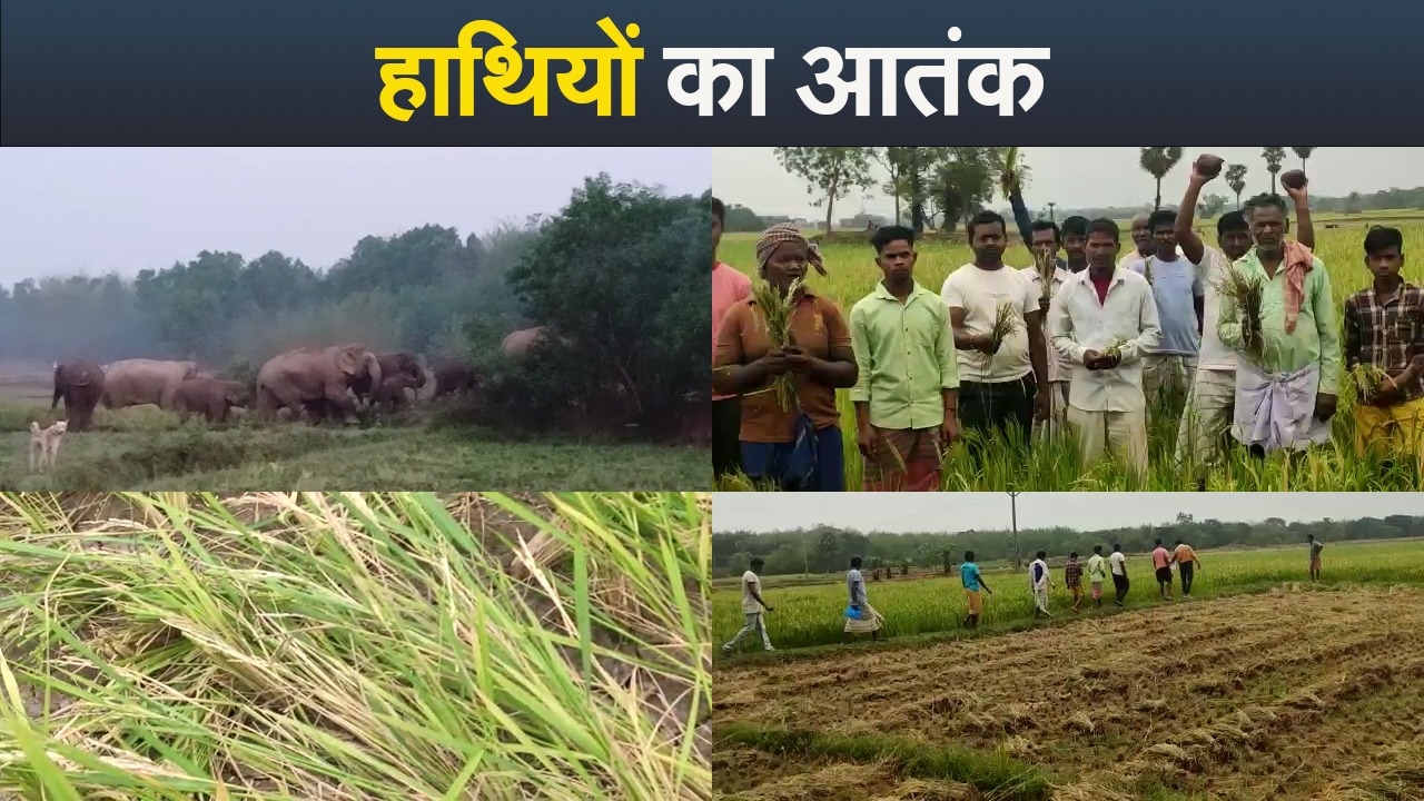 पूर्वी सिहंभूम में लोग हाथियों के आतंक से परेशान है. पूरा मामला पश्चिम बंगाल सीमा से सटे बहरागोड़ा प्रखंड के पूर्वांचल के इलाकों का है. जहां किसान धान की खेती करते हैं. खेतों में गरमा धान की फसल तैयार होते ही जंगली हाथियों का उपद्रव बढ़ गया है. जंगल से निकलकर जंगली हाथी गरमा धान की फसल को रौंदकर और खा कर नष्ट कर रहे हैं. इस इलाके में किसान हर साल बड़े पैमाने पर गरमा धान की खेती करते हैं. इस मौसम में धान की फसल पकनी शुरू हो गई है और कहीं कहीं कटाई भी हो रही है. ऐसे में शाम होते ही हाथी जंगल से निकलकर धान के खेतों में उपद्रव मचाने लगते हैं. विगत 5 साल से इस इलाके में जंगली हाथियों का उपद्रव लगातार बढ़ता जा रहा है. प्रत्येक साल किसानों को हाथियों के कारण भारी नुकसान उठाना पड़ता है. यहां के किसानों के लिए जंगली हाथी किसी प्राकृतिक आपदा से कम नहीं हैं.