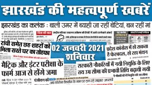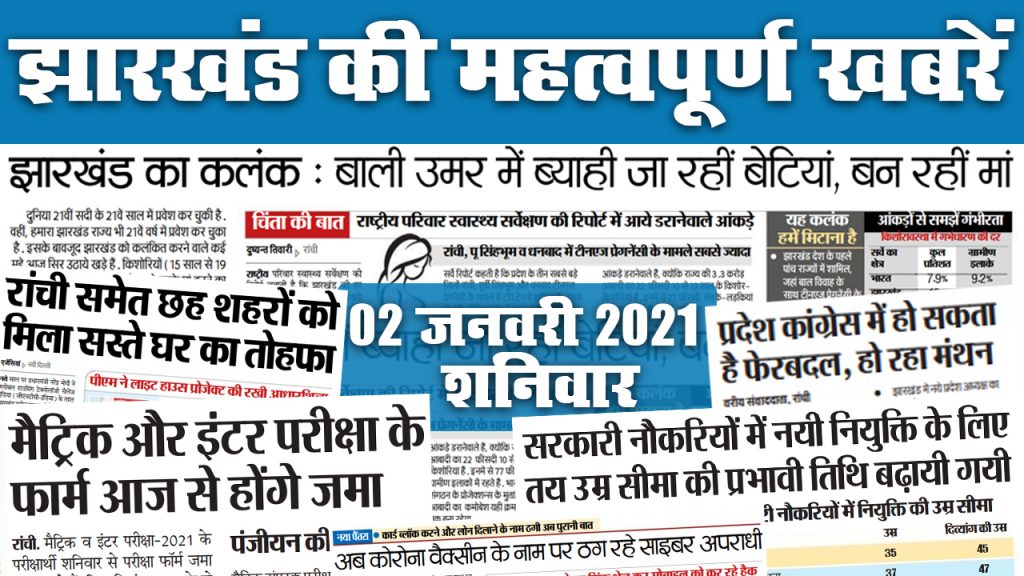 Jharkhand News, Corona Vaccination, Weather, Crime Updates: राज्य सरकार ने किया साफ, नक्शा पास करवाना करवाना है तो खतियान अनिवार्य होगा. कल से राज्य भर में शुरू होगा कोरोना वैक्सीनेशन, सरकार की तैयारी पूरी. सुफिया हत्याकांड का मुख्य आरोपी बिलाल पकड़ा गया. राज्य में 3.31 लाख राशन कार्ड फर्जी पाए गए, जिन्हें रद्द कर दिया गया. राज्य में दो दिन बाद दिखेगा सर्दी का सितम. वायल खुलने के 4 घंटे के अंदर करना होगा इस्तेमाल. आइये जानते हैं राज्य की अन्य महत्वपूर्ण खबरें..