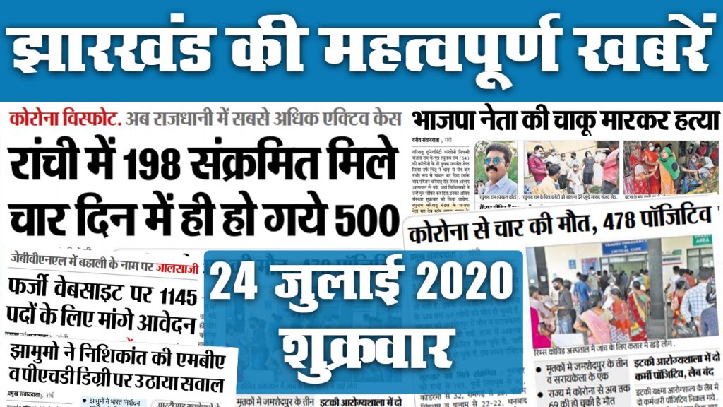 Jharkhand News, Coronavirus In Jharkhand, Shibu soren news, jee main and neet exam : शिबू सोरेन फिलहाल गुरुग्राम मेदांता में ही भर्ती है. राज्य में 1137 नये कोरोना संक्रमित मिले हैं. जिसमें रांची में 173 पाये गए है. इधर, राज्य में जेइइ मेन व नीट की परीक्षा के लिए केवल पांच ही सेंटर बनाए गए है. सरकार ने इस बीच बिजली उपभोक्ताओं को बड़ी राहत दी है. 100 यूनिट तक फ्री बिजली मिलती रहेगी साथ में सब्सिडी भी. अब बाबा धाम में प्रतिदिन 200 और बासुकिनाथ में 160 लोग प्रतिदिन दर्शन कर सकेंगे. आइये जानते हैं राज्य के प्रमुख शहर रांची, जमशेदपुर, धनबाद और देवघर समेत अन्य जिलों की 20 महत्वपूर्ण खबरें….