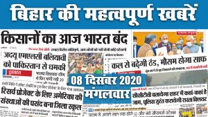 Bihar News, Patna, Bhagalpur, Gaya, Muzzaffarpur, Corona Vaccine, Weather Alert, Bharat Bandh In Bihar, Farmers Protest, Kisan Andolan: भारत बंद को लेकर बिहार में विशेष तैयारी है. लगभग सभी विपक्षी दल किसान आंदोलन में समर्थन दिए है. राज्य में बुधवार से और ठंड बढ़ने की संभावना है. इधर, रिसर्च प्रोजेक्ट के लिए अमेरिका के हार्वर्ड विश्वविधालय जैसे संस्थाओं की पसंद बना है गया का जिला स्कूल. आइये जानते हैं राज्य की क्राइम, कोरोना, वेदर, बंद से जुड़ी अन्य खबरें जो बनीं अखबारों की सुर्खियां