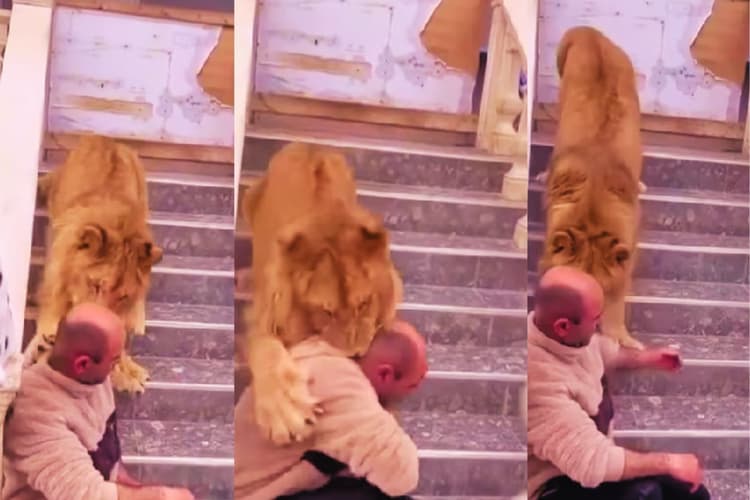 वायरल वीडियो में देखा जा सकता है एक शख्स शेर के साथ फोटो खिंचवाने के लिए सीढ़ियों पर बैठता है. इसके बाद शेर उस व्यक्ति के करीब आता है. चूंकि यह एक प्रशिक्षित शेर है, तो उस व्यक्ति को लगा कि वह पोज देने के लिए उसके पास आ रहा है. लेकिन, पास आते ही शेर ने उस व्यक्ति के गर्दन पर जोरदार झपटा मारा. और उसे अपना शिकार बनाने की कोशिश करने लगा. गनीमत रही कि शेर का ट्रेनर पास में ही था और उसने आकर उस शख्स की जान बचा ली. शेर के चंगुल से छूटते ही फोटो खिंचवाने आया शख्स तुरंत वहां से भाग निकला.