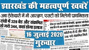 Jharkhand News, Lockdown Relaxation in Jharkhand, Unlock 4, Coronavirus : कोरोना महामारी के बीच झारखंड में एक बार फिर लॉकडाउन बढ़ा है. राज्य सरकार ने इसे 30 सितंबर तक बढ़ाया है. हालांकि, एक सितंबर से होटल, बस सेवा समेत कई सेक्टरों को नियमों और शर्तों के साथ छूट दी गयी है. जबकि, स्कूल, कोचिंग समेत कुछ सेक्टरों पर प्रतिबंध जारी रहेगा. इधर, राज्य में एक दिन में मिले 1137 नये कोरोना संक्रमित और 11 की मौत हो गयी है. हालांकि, 639 स्वस्थ भी हुए है. आइये जानते हैं जेइइ और नीट समेत राज्य के प्रमुख शहर रांची, जमशेदपुर, धनबाद और देवघर की 20 महत्वपूर्ण खबरें…