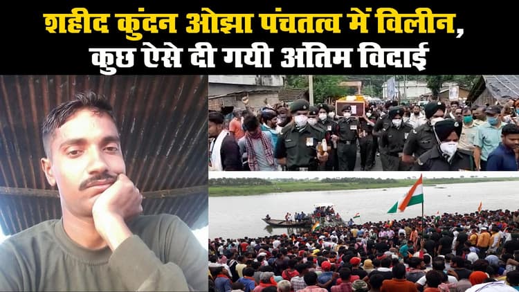 पूर्वी लद्दाख की गलवान घाटी में शहीद हुये मां भारती के सच्चे सपूत कुंदन ओझा पंचतत्व में विलीन हो गये. तिरंगे में लिपटा हुआ शहीद कुंदन का पार्थिव शरीर उनके गांव पहुंचा. गलवान घाटी के शहीद कुंदन ओझा को साहिबगंज के मुनीलाल श्मशान घाट में मुखाग्नि दी गयी. जवानों ने उन्हें सलामी दी.