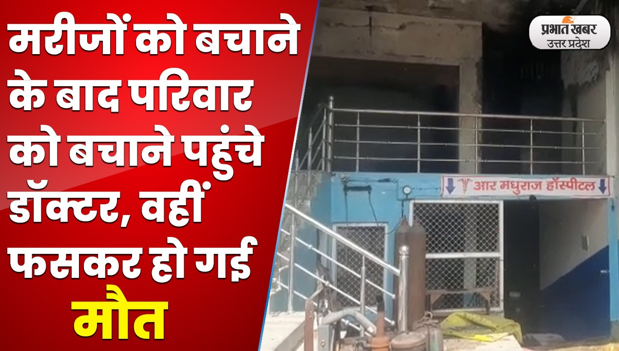 आगरा के शाहगंज इलाके में स्थित आर मधुराज हॉस्पिटल में भीषण आग लगने से बड़ा हादसा हो गया. आग की चपेट में आने से तीन लोगों की मौत हो गई, जिसमें हॉस्पिटल संचालक, उनकी बेटी और बेटा शामिल है. मौत का कारण दम घुटना बताया जा रहा है.