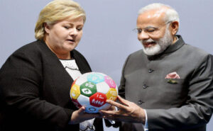 मोदी ने नार्वे की प्रधानमंत्री एरना सोलबर्ग के साथ भी दोनों देशों के आर्थिक संबंध मजबूत करने की बात की और वहां के पेंशन कोषों को भारत में निवेश के लिए आमंत्रित किया. मोदी और सोलबर्ग ने द्विपक्षीय मुद्दों विशेषतौर पर आर्थिक संबंधों को मजबूत बनाने पर विचार-विमर्श हुआ. प्रधानमंत्री मोदी ने नार्वे के पेंशन कोषों को भारत में राष्ट्रीय निवेश और बुनियादी ढांचा कोष में भागीदारी के लिए आमंत्रित किया. नार्वे के प्रधानमंत्री ने भी भारत को सामुद्रिक सम्मेलन में भागीदारी के लिए आमंत्रित किया. यह सम्मेलन संयुक्त राष्ट्र की महासभा के मौके पर होगा. बैठक की समाप्ति पर सोलबर्ग ने प्रधानमंत्री मोदी को एक फुटबाॅल भेंट की जिसपर एसडीजी (सतत विकास लक्ष्य) लिखा हुआ था.