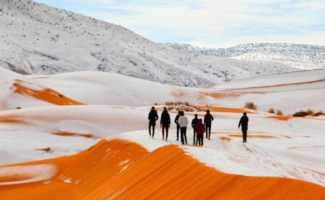 रेगिस्तान में बर्फबारी, सहारा के रेतीले मैदान में नजर आयी बर्फ की चादर