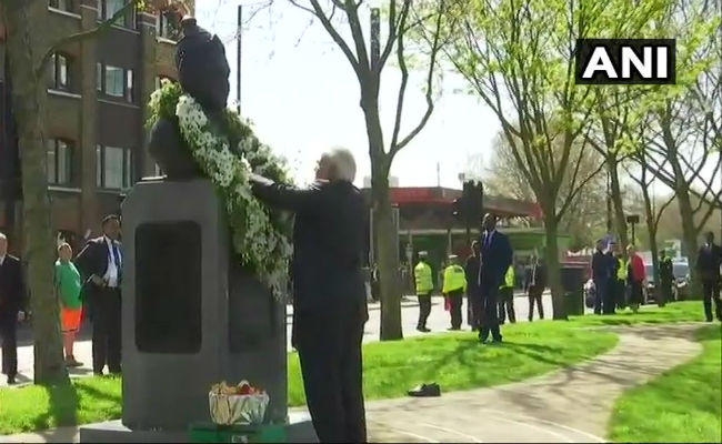 London: Prime Minister Narendra Modi paid floral tributes at the bust of Basaveshwara (12th-century Lingayat philosopher) at Albert Embankment Gardens. pic.twitter.com/Z9SJLRsuE7