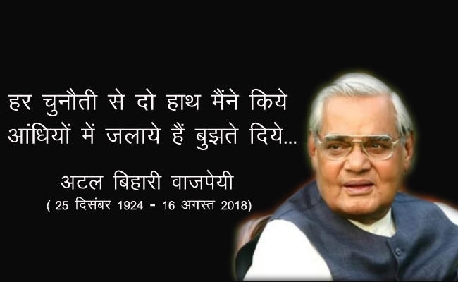 नयी दिल्ली/रांची : काल के कपाल लिखने-मिटाने वाले और मौत से दो-दो हाथ करने वाले पूर्व प्रधानमंत्री अटल बिहारी वाजपेयी आखिरकार गुरुवार यानी 16 अगस्त को मौत से हार गये. करीब 93 साल की उम्र में काल के कपाल पर लिखने वाले पूर्व प्रधानमंत्री वाजपेयी ने दिल्ली के एम्स में गुरुवार की शाम करीब पांच बजकर पांच मिनट पर अंतिम सांसें ली.