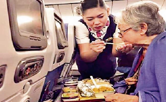 सोशल मीडिया पर इन दिनों एक तस्वीर लोगों की जमकर वाहवाही बटोर रही है. इस तस्वीर में एक फ्लाइट अटेंडेंट एक बुजुर्ग महिला को चम्मच से खाना खिलाती हुई दिख रही है. यह तस्वीर फिलीपींस एयरलाइंस की है, जिसे फेसबुक यूजर रीना शेरिल एस्ताबिलियो डाजाओ ने अपने पेज पर शेयर किया है.