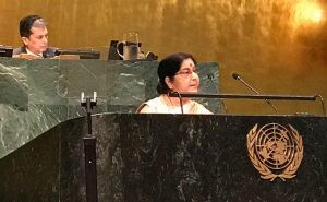 संयुक्तराष्ट्र: संयुक्त राष्ट्र महासभा के 73वें सत्र में शनिवार को भारत की विदेश मंत्री सुषमा स्वराज ने पाकिस्तान को जमकर फटकार लगायी. विदेश मंत्री सुषमा स्वराज ने संयुक्त राष्ट्र में विश्व के नेताओं से कहा कि पाकिस्तान की आतंकवाद के प्रति राज्य की नीति के तौर पर प्रतिबद्धता अंश मात्र भी कम नहीं हुई है. स्वराज ने सवाल किया कि भारत ऐसे देश से वार्ता कैसे आगे बढ़ा सकता है जो हत्यारों का महिमामंडन करता है तथा मुम्बई आतंकवादी हमले के मुख्य षड्यंत्रकर्ता ‘‘बेरोकटोक घूमने’ दे रहा है.