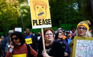 प्रदर्शन में शामिल लोगों के हाथों में तख्तियां थीं, जिन पर लिखा था, ‘प्रेसिडेंट हेट, लीव आवर स्टेट’, ‘ट्रंप, अब व्हाइट हाउस का राष्ट्रवाद छोड़ें’ और ‘ट्रंप के झूठ जान लेतेहैं’. प्रदर्शनकारी ‘ट्री ऑफ लाइफ’ सिनेगॉग के पास जमा हुए, जहां शनिवार को गोलीबारी हुई थी.