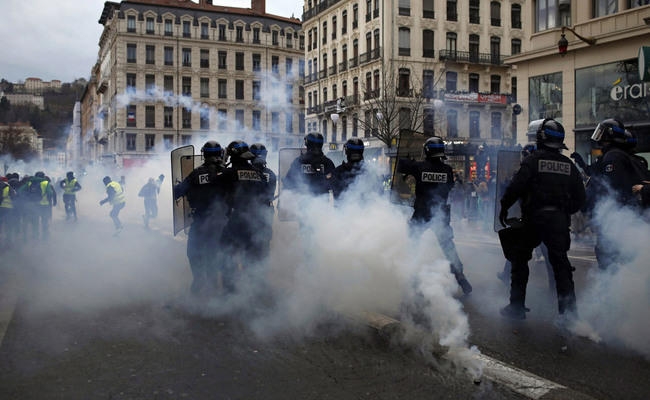 पेरिस : फ्रांस में ‘येलो वेस्ट’ प्रदर्शन के नये दौर के दौरान प्रदर्शनकारियों की दंगारोधी पुलिस से झड़प हो गयी और 1700 से अधिक लोग गिरफ्तार कर लिये गये. गृह मंत्रालय ने रविवार को यह खबर दी.
