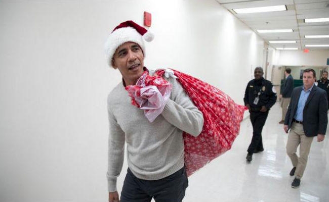 जी हां, खबर है कि बराक ओबामा सांता क्लॉज बन कर एक अस्पताल पहुंच गये.वॉशिंगटन के अस्पताल में बराक ओबामा अचानक सिर पर लाल टोपी और कंधे पर झोला लेकर बच्चों से मिलने पहुंचे.