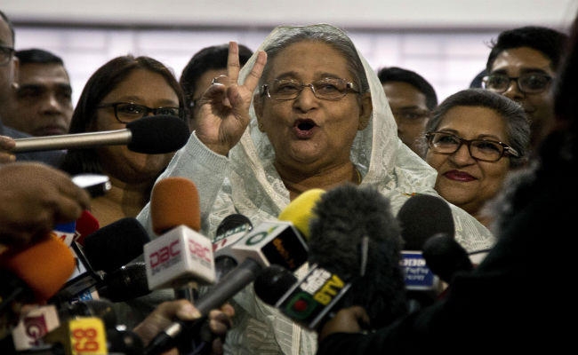 ढाका : प्रधानमंत्री शेख हसीना की पार्टी अवामी लीग ने रविवार को हुए आम चुनाव में प्रचंड बहुमत हासिल कर लगातार तीसरी बार ऐतिहासिक जीत दर्ज की है. नतीजों को खारिज करते हुए विपक्षी गठबंधन ने नये सिरे से चुनाव कराने की मांग की है. इससे पहले मतदान के दौरान देश के विभिन्न हिस्सों में चुनाव से जुड़ी हिंसा में कम से कम 17 लोग मारे गये थे.