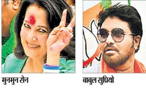 अपने अभिनय और अदाओं से वर्षों तक बंगाल के दर्शकों को लुभा चुकीं तृणमूल कांग्रेस की सांसद और प्रसिद्ध बांग्ला अभिनेत्री सुचित्रा सेन की पुत्री-अभिनेत्री मुनमुन सेन को तृणमूल कांग्रेस ने पश्चिम बंगाल के हिंदी बहुल संसदीय क्षेत्र आसनसोल से मनमोहक आवाज के बादशाह माने जाने वाले, फिल्मों के पार्श्वगायक, मंत्री व भाजपा के उम्मीदवार बाबुल सुप्रियो के खिलाफ उम्मीदवार बनाया है. फिल्मी जगत की दो हस्तियों से मुकाबले से आसनसोल की चुनावी छटा बहुत ही रंगीन हो गयी है. अपने चुनाव प्रचार में बाबुल अपने गीतों व गानों के माध्यम से मतदाताओं को लुभा रहे हैं, तो मुनमुन सेन अपने ग्लैमर से मतदाताओं को लुभाने में जुटी हैं. लोकसभा चुनाव के चौथे चरण में आसनसोल में 29 अप्रैल को मतदान है.