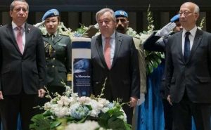 गुतारेस ने कहा कि यह अक्सर खतरनाक मानी जाने वाली हमारे कार्य की प्रकृति की दुख भरी याद है, लेकिन यह दुनिया भर की हजारों महिलाएं एवं पुरुषों की प्रतिबद्धता का साक्षी भी है जो विश्व के सबसे कमजोर एवं जरूरतमंद लोगों को मदद मुहैया कराने एवं शांति को बढ़ावा देने के लिए सबकुछ दांव पर लगाने के लिए तैयार रहते हैं. संयुक्त राष्ट्र प्रमुख ने 43 अलग-अलग देशों के 115 सहयोगियों के सम्मान में एक मोमबत्ती जलायी. एस्पिनोसा ने मानवता के प्रति उनके समर्पण, जुनून और प्रतिबद्धता के लिए अपना अत्यंत सम्मान अभिव्यक्त किया.