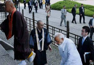 मोदी के मौजूदा जापान दौरे में ऐसे उदाहरणों की कमी नहीं है, जहां धार्मिक-सांस्कृतिक प्रतीकों का सहारा कूटनीतिक कामयाबी हासिल करने के लिए लिया गया. जापान को भारत के और करीब लाने की कवायद में लगे मोदी ने अपने जापान दौरे की शुरु आत ही क्योतो से की. क्योतो को जापान में वही स्थान हासिल है, जो भारत में काशी यानी वाराणसी को. यहां के तोजी मंदिर में जापान के प्रधानमंत्री शिंजो एबे के साथ जानेवाले मोदी जापान के लोगों को ये याद कराना नहीं भूले कि आखिर भारत के कितने पुराने संबंध जापान से हैं, आखिर जापान में सर्वाधिक प्रचिलत बौद्ध धर्म भारत से ही यहां तक आया.