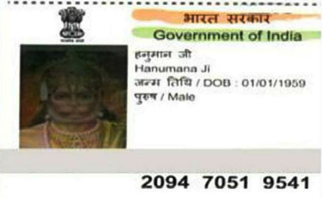 बजरंगबली का पता आधार कार्ड पर पता लिखा है, ‘हनुमानजी, पुत्र पवन जी, वार्ड नंबर 6 पंचायत समिति के पास , दांतारामगढ़ जिला सीकर (राजस्थान). आधार कार्ड बेंगलुरु से बन कर आया हुआ है. लेकिन डाकिया चार पांच दिनों से आधार कार्ड देने के लिए हनुमानजी को खोज रहा है लेकिन हनुमानजी मिल नहीं रहे हैं. कार्ड पर फोटो भी गदाधारी का सीकर जिले के दांतारामगढ़ डाकघर के पोस्टमास्टर गोबराज ने बताया ‘ आधार कार्ड पर हनुमानजी (गदाधारी हनुमान) का फोटो है , आधार कार्ड में हनुमानजी की जन्म तिथि 01-01-1959 मोबाइल नंबर 9680277444 लिखा हुआ है.