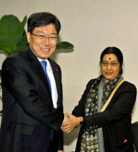 सुषमा ने यहां पहुंचने के बाद भारत के महत्वपूर्ण ‘मेक इन इंडिया’ कार्यक्रम के लिये कोरिया के सहयोग को लेकर दक्षिण कोरिया के व्यापार, उद्योग एवं ऊर्जा मंत्री यून सांग-जिक से मुलाकात की.