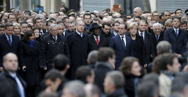 इस हाइप्रोफाइल मार्च के लिए पेरिस में सुरक्षा के पुख्ता इंतजाम किये गये. मार्च में जॉर्डन की रानी रानिया अल अब्दुल्लाह और किंग अब्दुल्लाह द्वितीय, फ्रांस के पूर्व राष्ट्रपति निकोलस सरकोजी, ब्रिटेन के प्रधानमंत्री डेविड कैमरन, तुकी, जर्मनी की चांसलर एंजेला मार्केल, जॉर्डन सहित कई देशों के नेता पहुंचे. दुनिया के कई अलग-अलग देशों में भी इस आतंकी कार्रवाई के विरोध में मार्च निकाला गया. पूरे फ्रांस में इसको लेकर अलर्ट जारी किया गया है. रैली में भावनाओं का ज्वार उमड़ पड़ा और अलग-अलग क्षेत्रों के कई लोगों के आंखों में आंसू आ गए. ये सभी लोग ‘‘अभिव्यक्ति की स्वतंत्रता’’ के बैनर तले एक साथ आए.