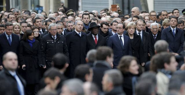 इस हाइप्रोफाइल मार्च के लिए पेरिस में सुरक्षा के पुख्ता इंतजाम किये गये. मार्च में जॉर्डन की रानी रानिया अल अब्दुल्लाह और किंग अब्दुल्लाह द्वितीय, फ्रांस के पूर्व राष्ट्रपति निकोलस सरकोजी, ब्रिटेन के प्रधानमंत्री डेविड कैमरन, तुकी, जर्मनी की चांसलर एंजेला मार्केल, जॉर्डन सहित कई देशों के नेता पहुंचे. दुनिया के कई अलग-अलग देशों में भी इस आतंकी कार्रवाई के विरोध में मार्च निकाला गया. पूरे फ्रांस में इसको लेकर अलर्ट जारी किया गया है. रैली में भावनाओं का ज्वार उमड़ पड़ा और अलग-अलग क्षेत्रों के कई लोगों के आंखों में आंसू आ गए. ये सभी लोग ‘‘अभिव्यक्ति की स्वतंत्रता’’ के बैनर तले एक साथ आए.